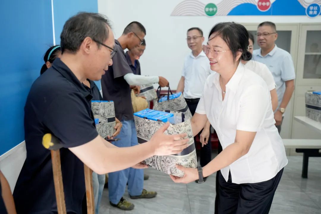 活動最后,大禹電氣公司準備了100件慰問物資并現(xiàn)場發(fā)放給殘疾職工,讓殘疾職工在炎炎烈日下感受到清涼。